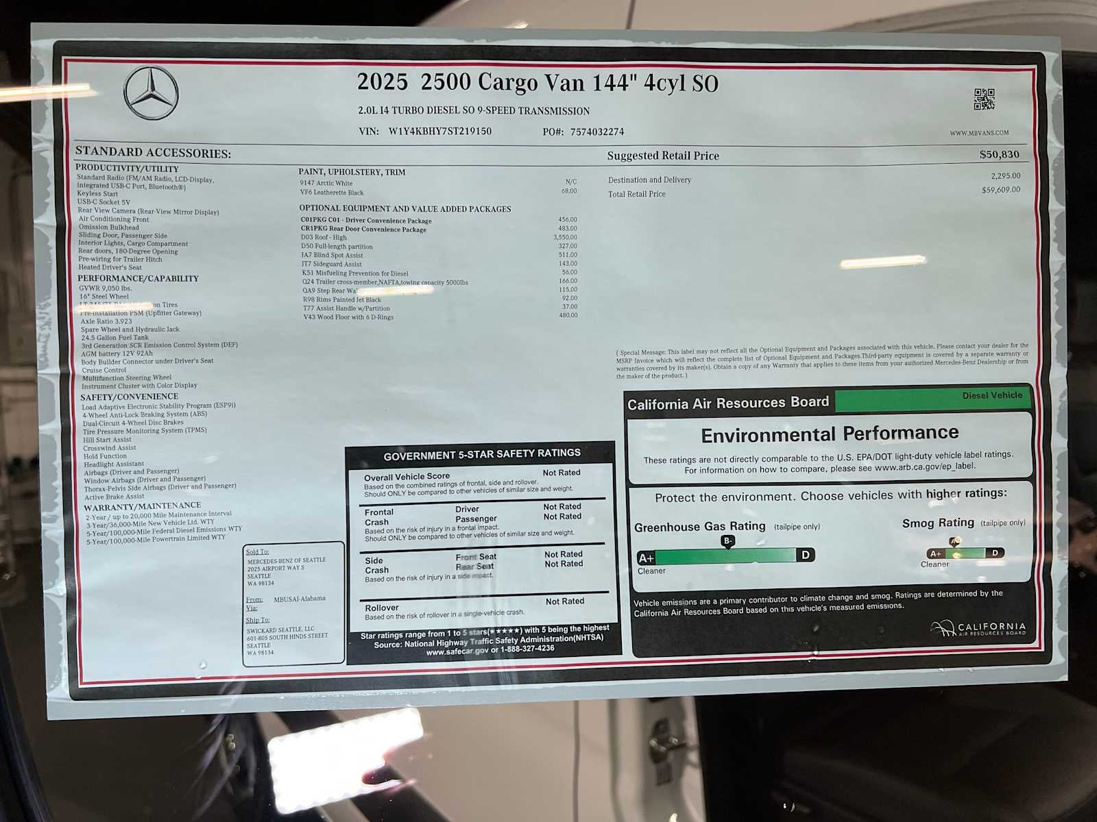 • Vehicle Name: Mercedes-Benz Sprinter Cargo Van