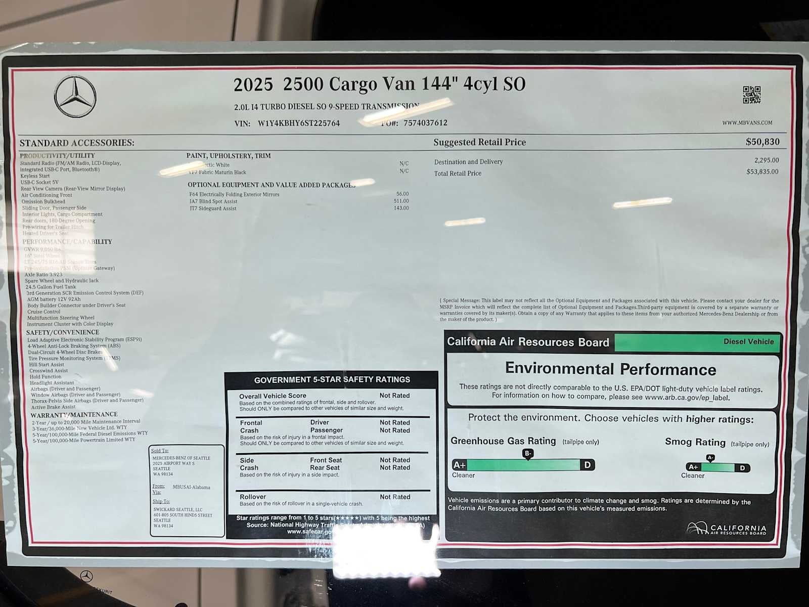 - Vehicle Name: Mercedes-Benz Sprinter Cargo Van