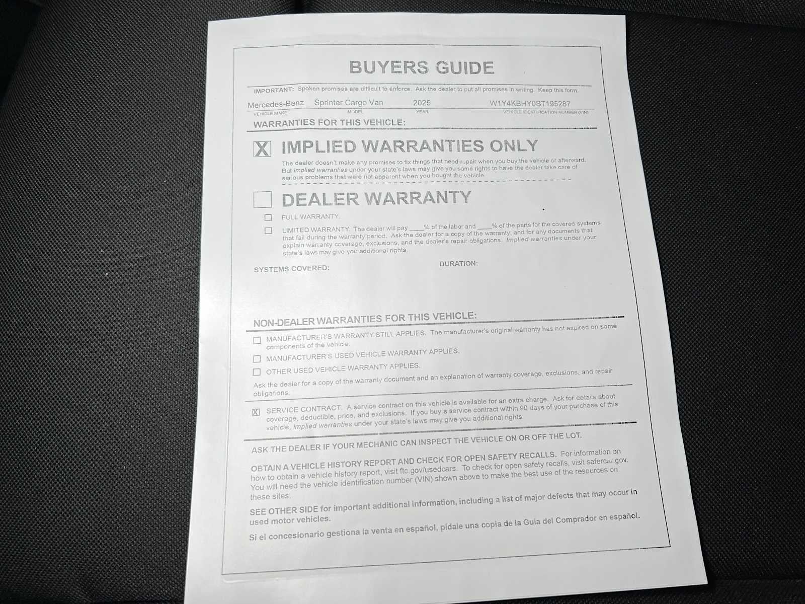 - Vehicle Name: Mercedes-Benz Sprinter Cargo Van